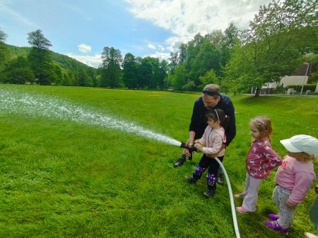 Hasičské auto, oblečení, hadice ....stříkat vodu líbilo se dětem nejvíce