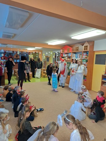 Mikuláš s čerty a anděly přišel do školky za námi