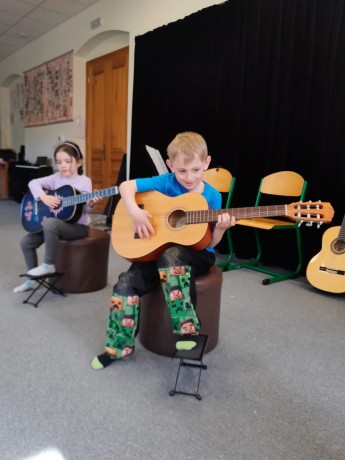 Předškoláci hudební obor v ZUŠ navštívili a hru na kytaru si vyzkoušeli