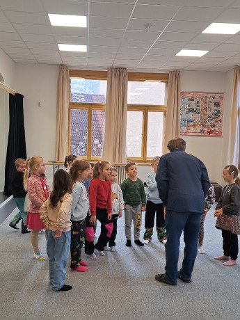 Předškoláci ZUŠ navštívili, s dramatickým oborem se seznámili a na cestě zpět se na hřišti zastavili