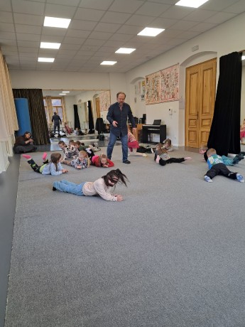 Předškoláci ZUŠ navštívili, s dramatickým oborem se seznámili a na cestě zpět se na hřišti zastavili