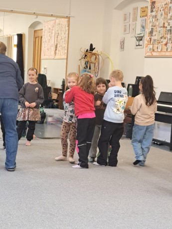 Předškoláci ZUŠ navštívili, s dramatickým oborem se seznámili a na cestě zpět se na hřišti zastavili