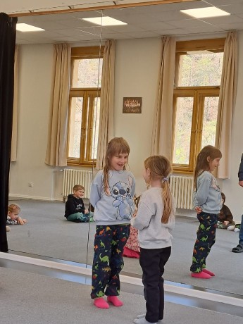 Předškoláci ZUŠ navštívili, s dramatickým oborem se seznámili a na cestě zpět se na hřišti zastavili