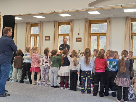 Předškoláci ZUŠ navštívili, s dramatickým oborem se seznámili a na cestě zpět se na hřišti zastavili