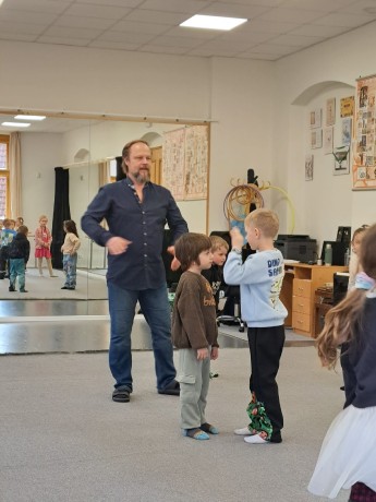 Předškoláci ZUŠ navštívili, s dramatickým oborem se seznámili a na cestě zpět se na hřišti zastavili