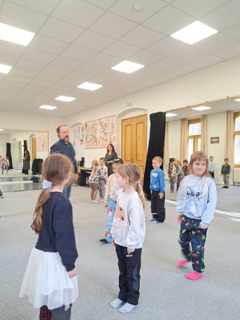 Předškoláci ZUŠ navštívili, s dramatickým oborem se seznámili a na cestě zpět se na hřišti zastavili
