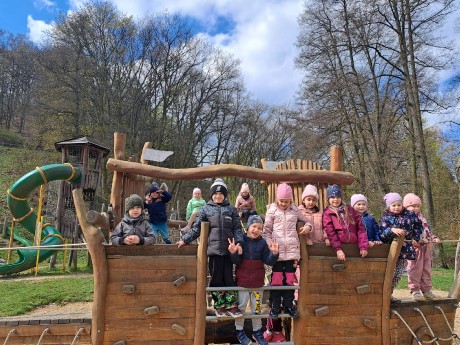 Předškoláci ZUŠ navštívili, s dramatickým oborem se seznámili a na cestě zpět se na hřišti zastavili