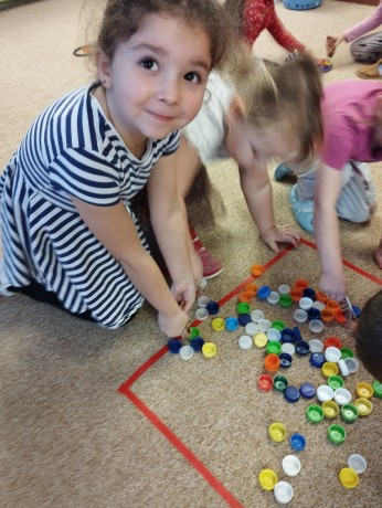 Ptačí týden - víčka jako zrníčka jsme kolíčkem zobali, do peříček foukali, po cestičkách skákali
