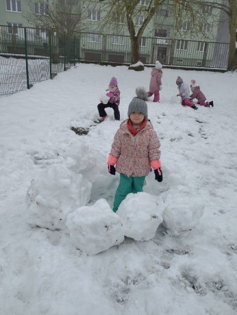 Sníh si pěkně užíváme, na kluzácích jezdíme a velké koule tvoříme