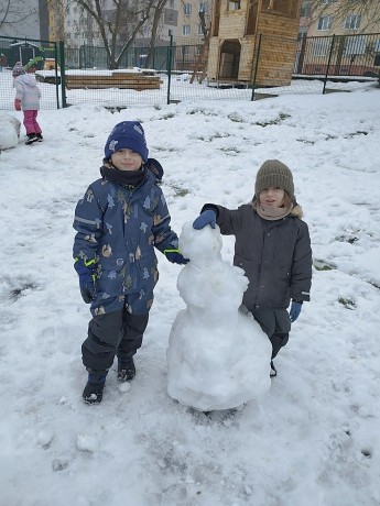 Sníh si pěkně užíváme, na kluzácích jezdíme a velké koule tvoříme