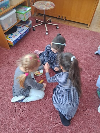 Tvary jsme třídili, panáčky z nich stavěli a po cestě z tvarů skákali