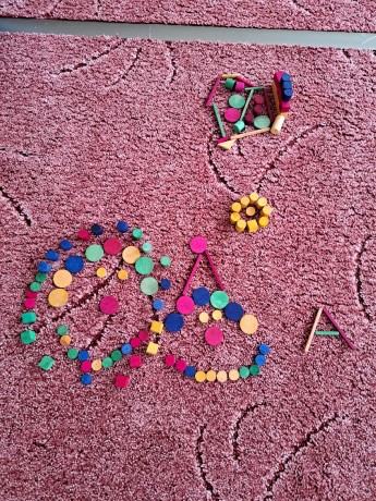 Tvary jsme třídili, panáčky z nich stavěli a po cestě z tvarů skákali