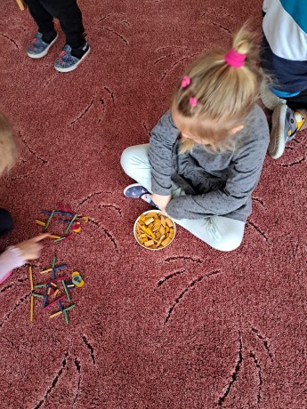 Tvary jsme třídili, panáčky z nich stavěli a po cestě z tvarů skákali