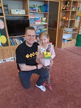 Tvoření s rodiči jsme ve školce měli, vajíčka si ozdobili a slepičku vyráběli