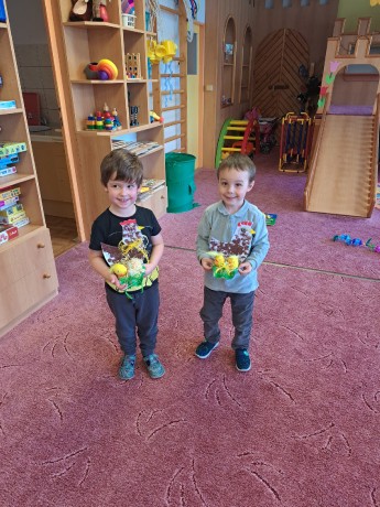 Tvoření s rodiči jsme ve školce měli, vajíčka si ozdobili a slepičku vyráběli
