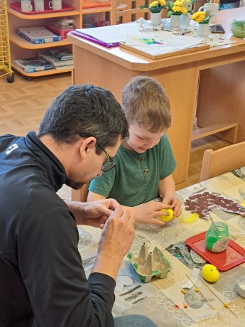 Tvoření s rodiči jsme ve školce měli, vajíčka si ozdobili a slepičku vyráběli