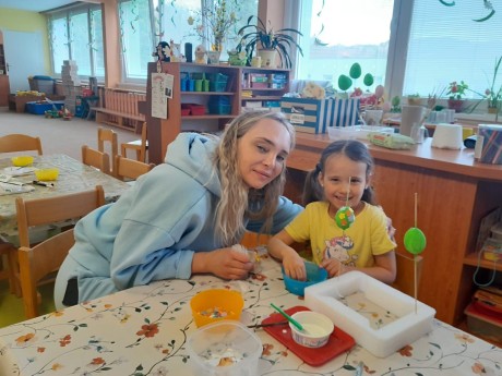 Tvoření s rodiči jsme ve školce měli, vajíčka si ozdobili a slepičku vyráběli