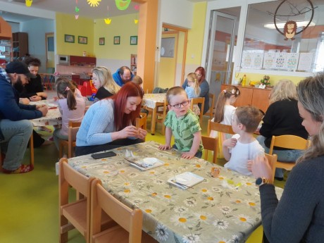 Tvoření s rodiči jsme ve školce měli, vajíčka si ozdobili a slepičku vyráběli