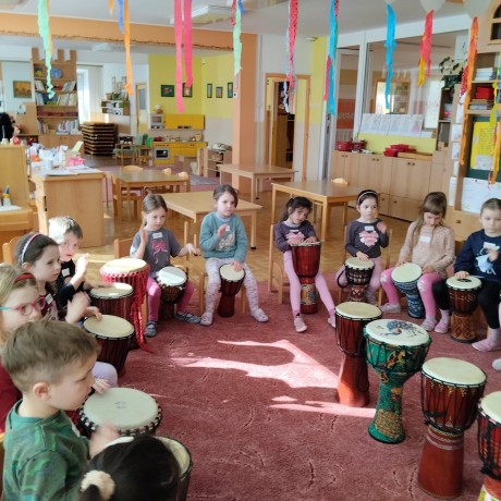 Ve školce jsme na bubínky djembe bubnovali, různé rytmy i relaxaci jsme trénovali