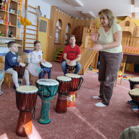 Ve školce jsme na bubínky djembe bubnovali, různé rytmy i relaxaci jsme trénovali