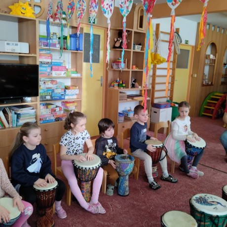 Ve školce jsme na bubínky djembe bubnovali, různé rytmy i relaxaci jsme trénovali