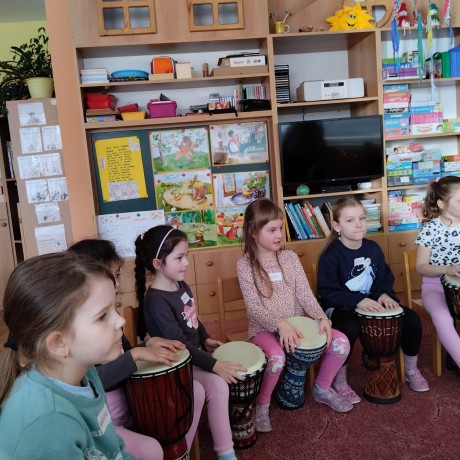 Ve školce jsme na bubínky djembe bubnovali, různé rytmy i relaxaci jsme trénovali