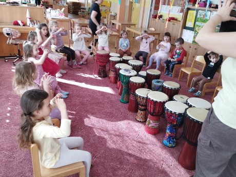 Ve školce jsme na bubínky djembe bubnovali, různé rytmy i relaxaci jsme trénovali
