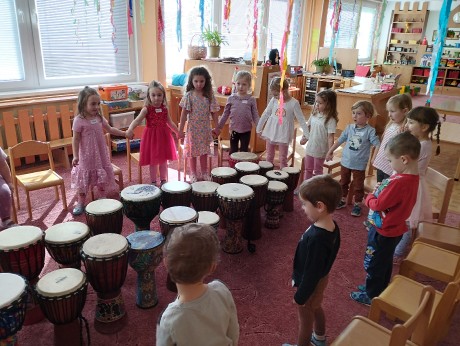 Ve školce jsme na bubínky djembe bubnovali, různé rytmy i relaxaci jsme trénovali