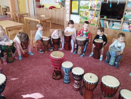 Ve školce jsme na bubínky djembe bubnovali, různé rytmy i relaxaci jsme trénovali