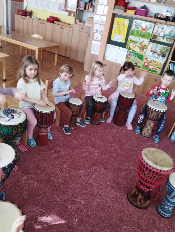 Ve školce jsme na bubínky djembe bubnovali, různé rytmy i relaxaci jsme trénovali