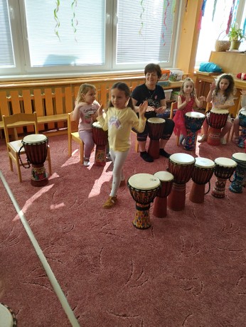 Ve školce jsme na bubínky djembe bubnovali, různé rytmy i relaxaci jsme trénovali