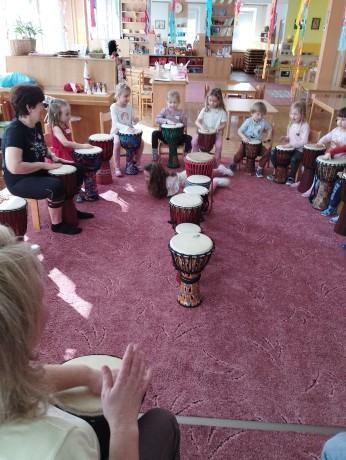 Ve školce jsme na bubínky djembe bubnovali, různé rytmy i relaxaci jsme trénovali