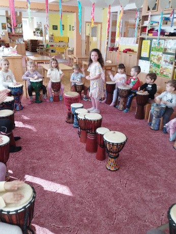 Ve školce jsme na bubínky djembe bubnovali, různé rytmy i relaxaci jsme trénovali