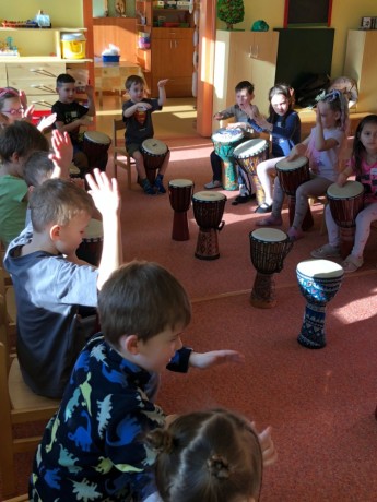 Na bubínky djembe jsme bubnovali, rytmus jsme všichni udrželi