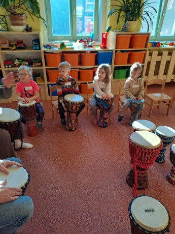 Na bubínky djembe jsme bubnovali, rytmus jsme všichni udrželi